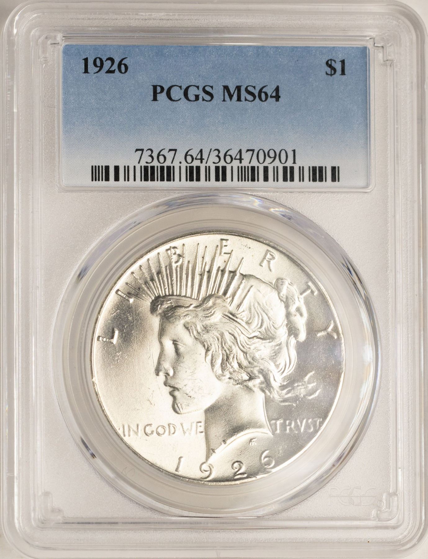 One 1926 $1 Peace Silver Dollar Coin PCGS MS64.