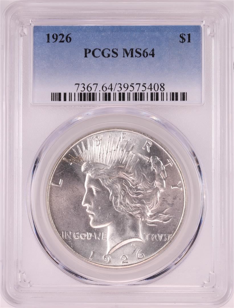 One 1926 $1 Peace Silver Dollar Coin PCGS MS64. PCGS Graded.