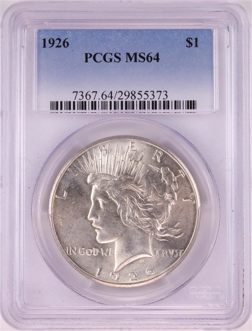 One 1926 $1 Peace Silver Dollar Coin PCGS MS64. PCGS Graded.