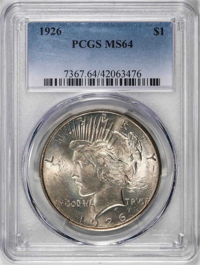 One 1926 $1 Peace Silver Dollar Coin PCGS MS64. PCGS Graded.
