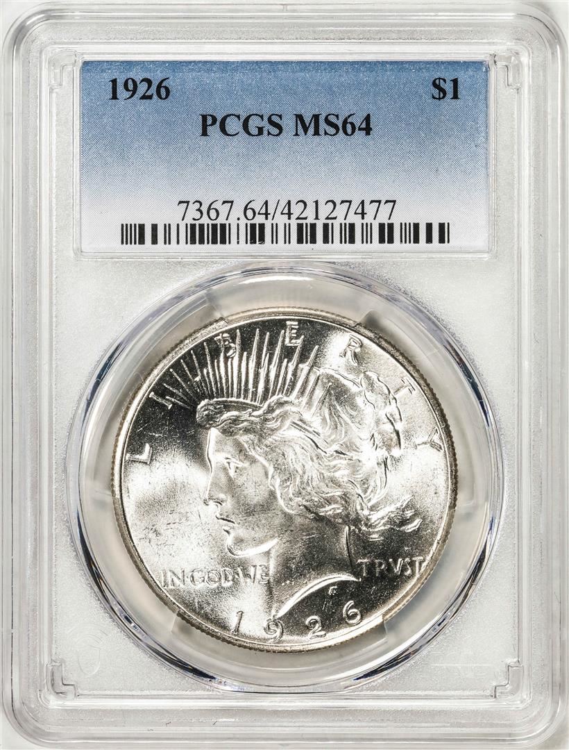 One 1926 $1 Peace Silver Dollar Coin PCGS MS64. PCGS Graded.