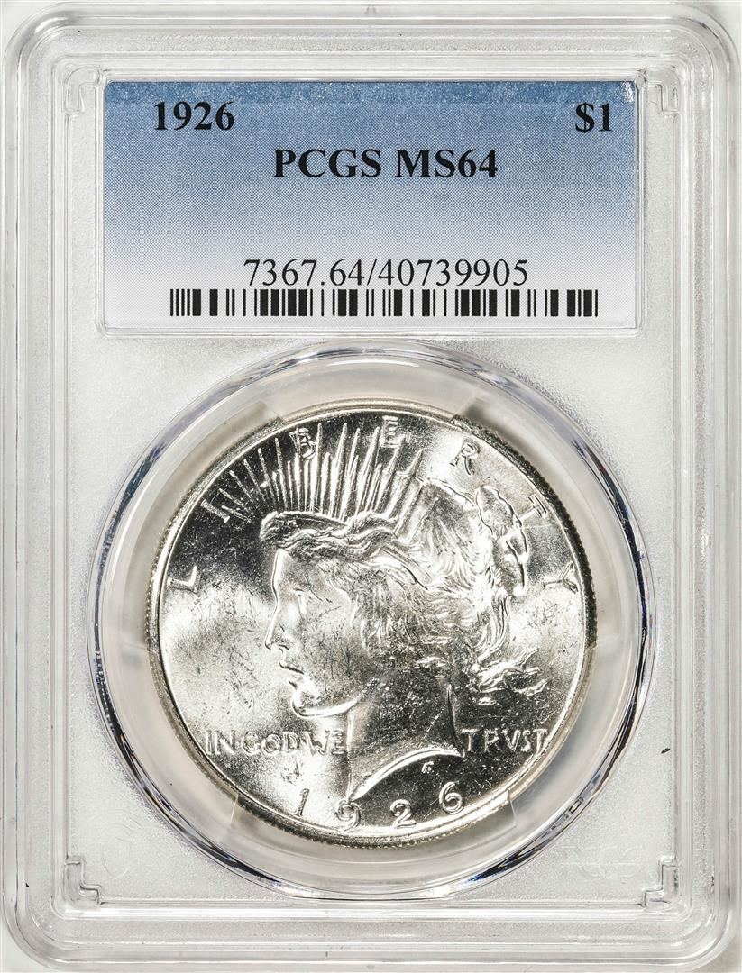 One 1926 $1 Peace Silver Dollar Coin PCGS MS64. PCGS Graded.