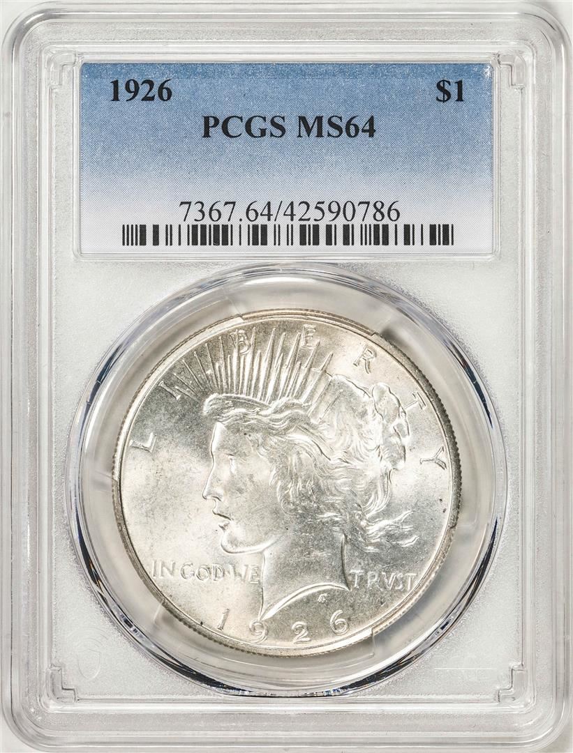 One 1926 $1 Peace Silver Dollar Coin PCGS MS64. PCGS Graded.