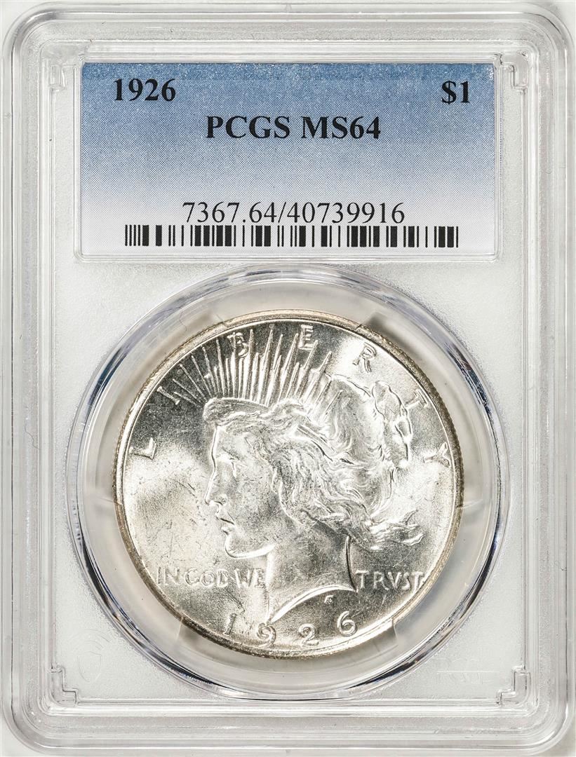 One 1926 $1 Peace Silver Dollar Coin PCGS MS64. PCGS Graded.