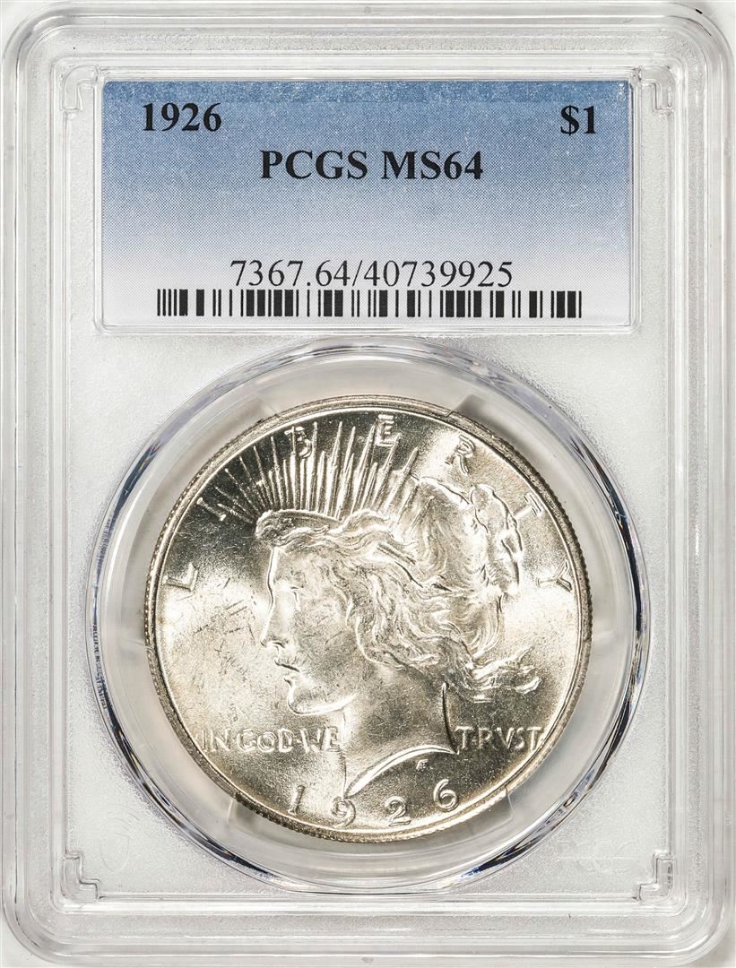 One 1926 $1 Peace Silver Dollar Coin PCGS MS64. PCGS Graded.