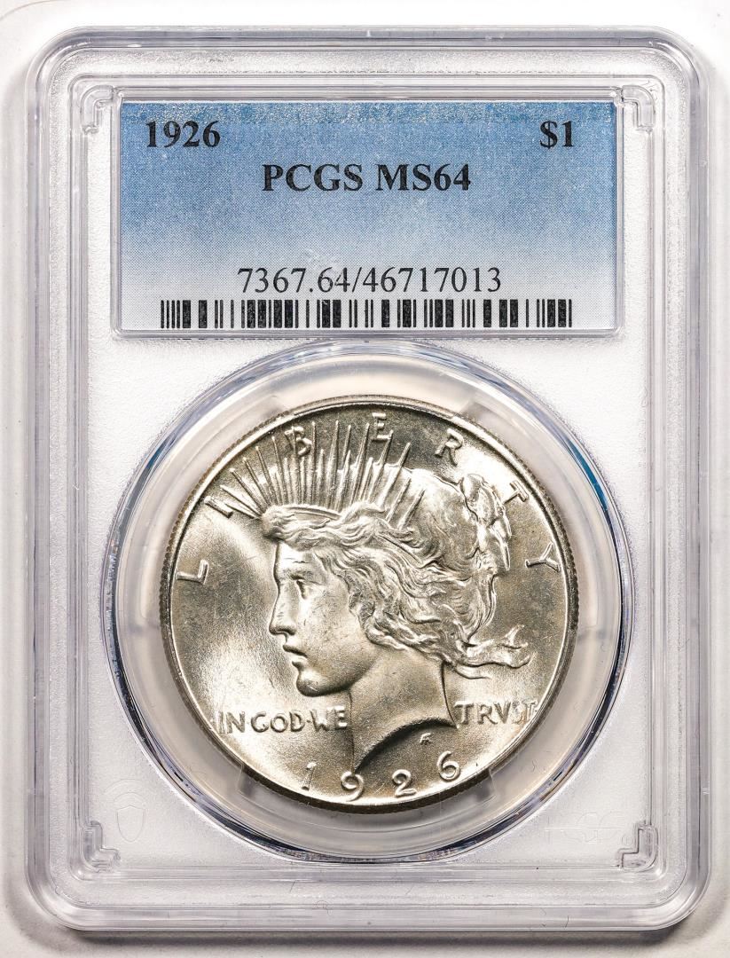 One 1926 $1 Peace Silver Dollar Coin PCGS MS64. PCGS Graded.