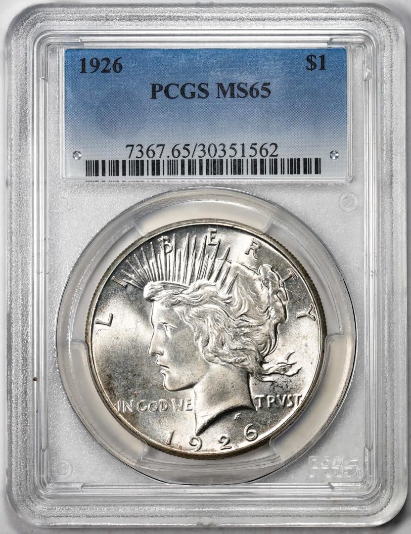 One 1926 $1 Peace Silver Dollar Coin PCGS MS65. PCGS Graded.