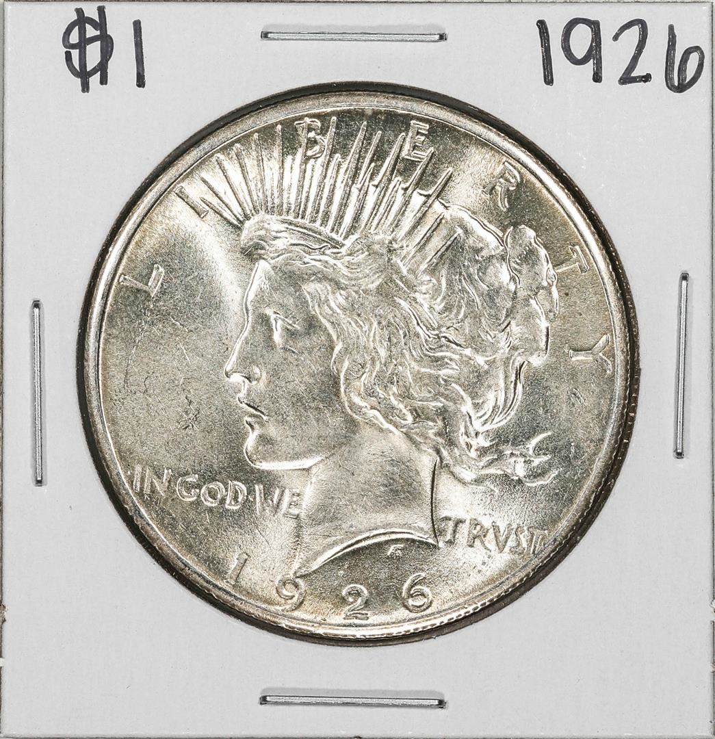One 1926 $1 Peace Silver Dollar Coin.