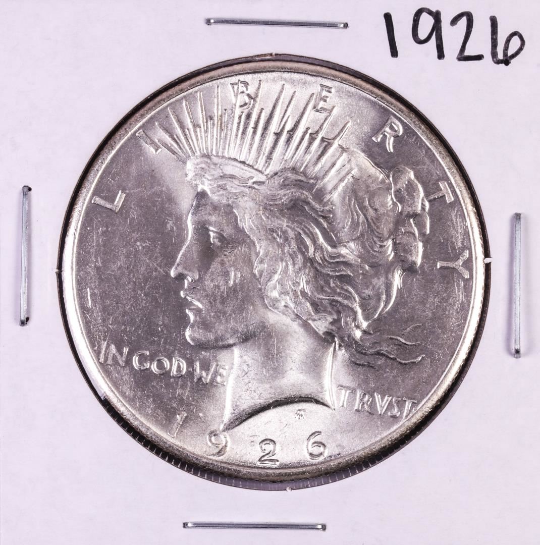 One 1926 $1 Peace Silver Dollar Coin.