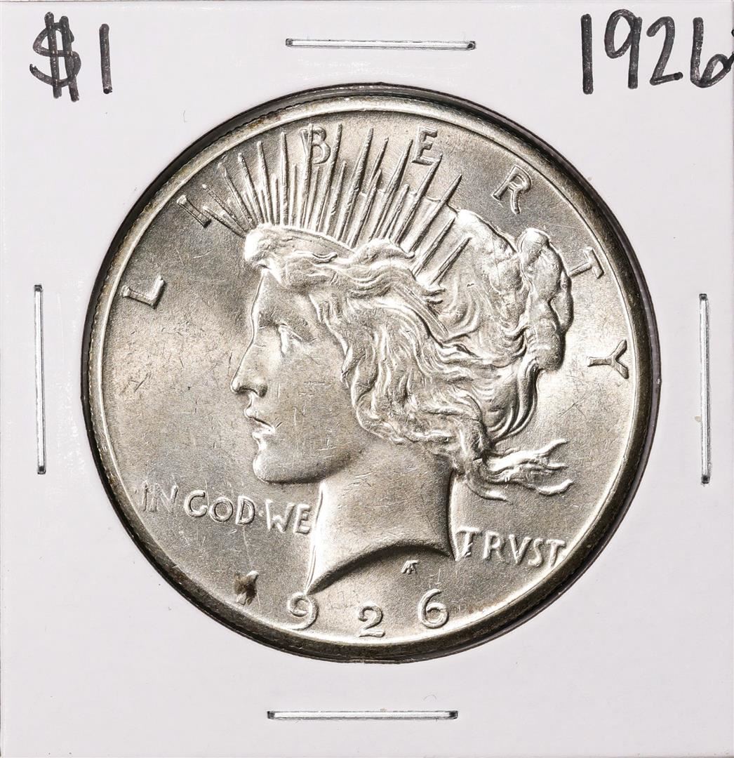 One 1926 $1 Peace Silver Dollar Coin.