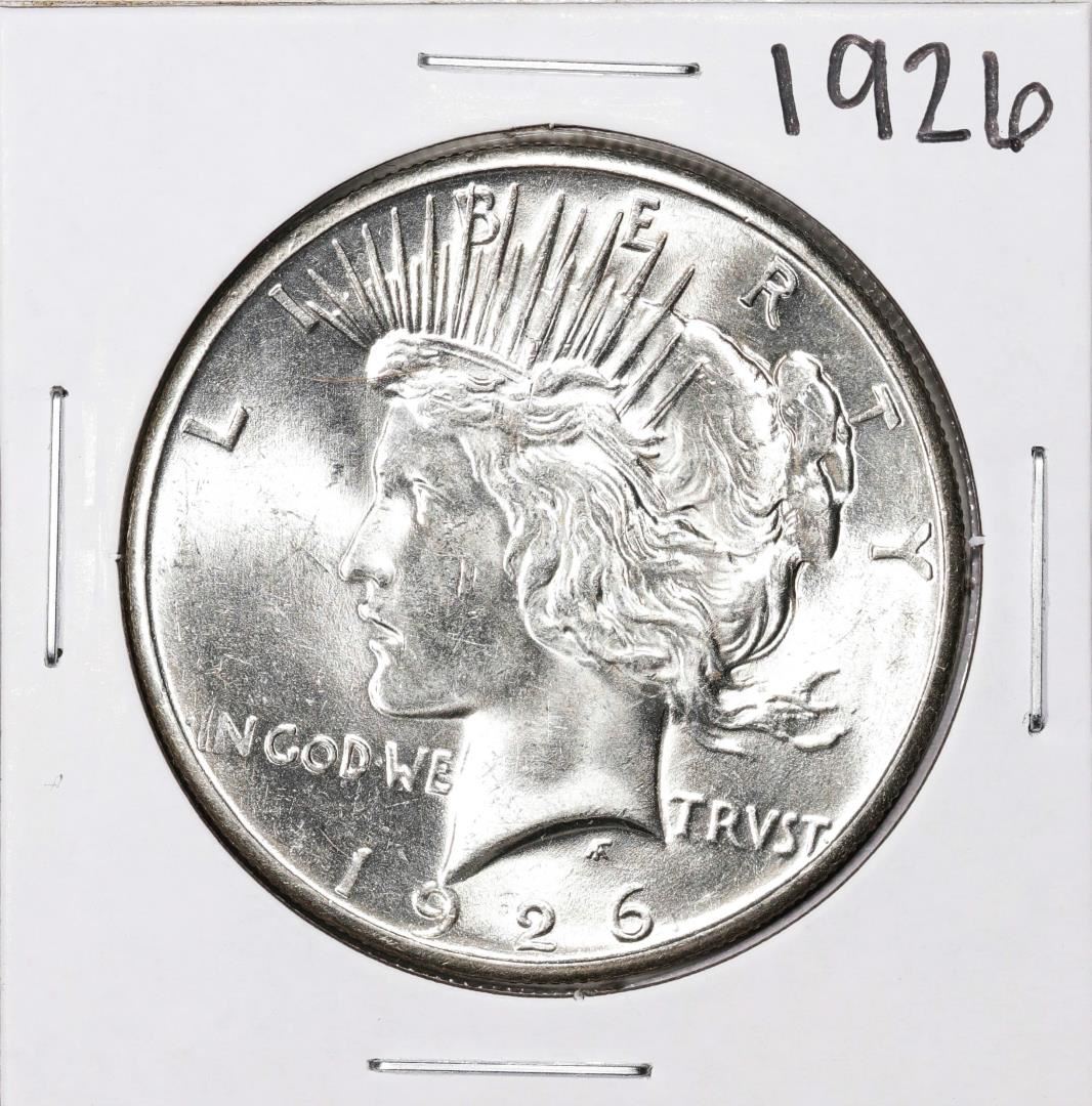 One 1926 $1 Peace Silver Dollar Coin.