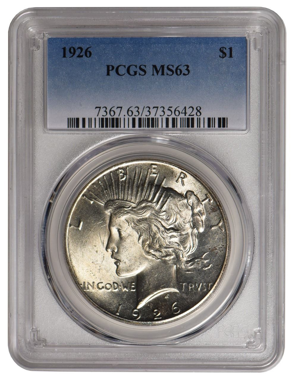 One 1926 $1 Peace Silver Dollar PCGS MS63.