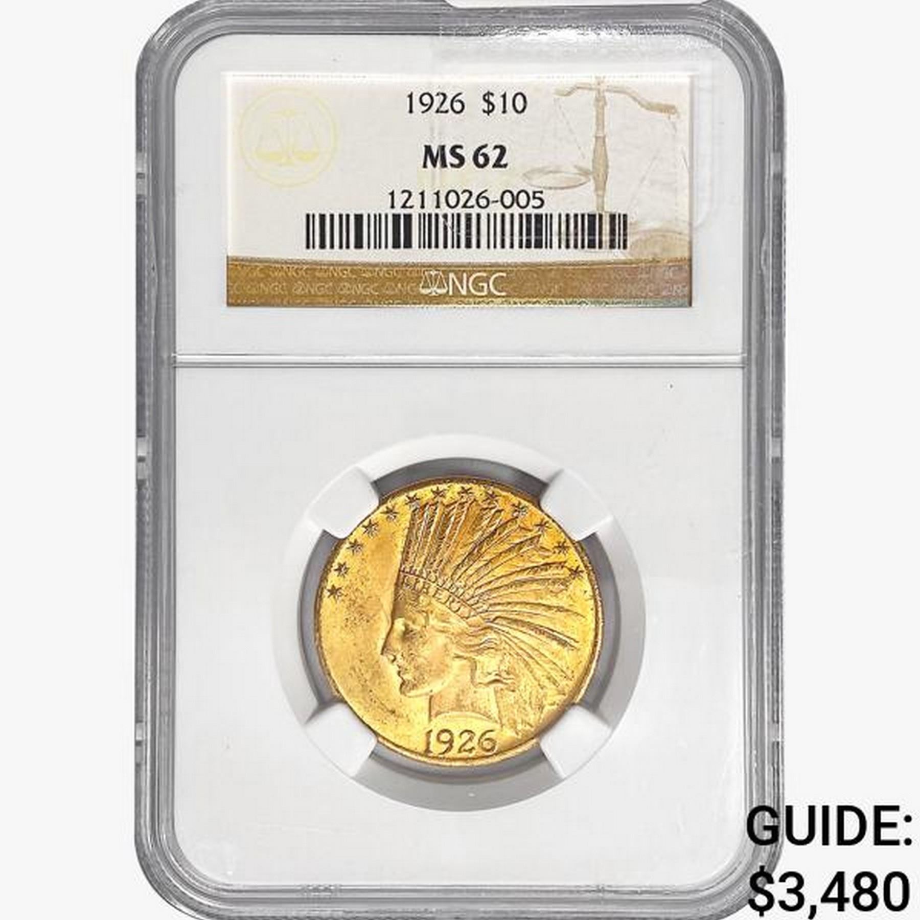 1926 $10 Gold Eagle NGC MS62