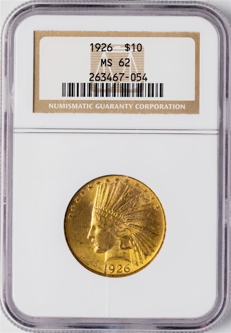 One 1926 $10 Indian Head Eagle Gold Coin NGC MS62. NGC Certified.