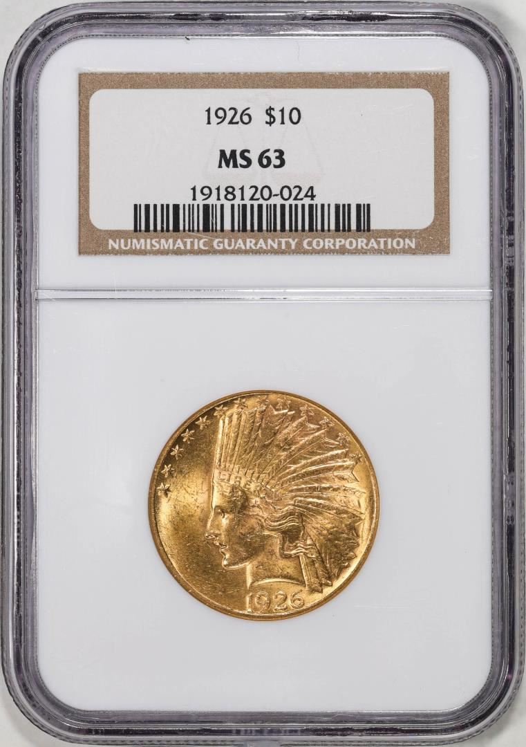 One 1926 $10 Indian Head Eagle Gold Coin NGC MS63. NGC Certified.