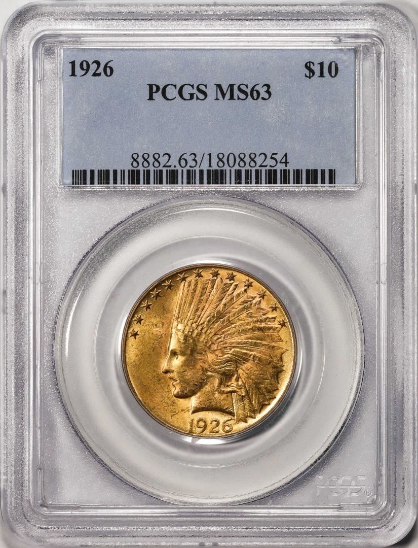 One 1926 $10 Indian Head Eagle Gold Coin PCGS MS63. PCGS Graded.