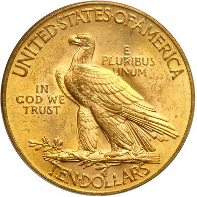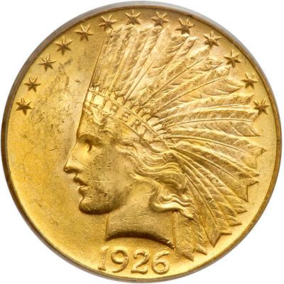 1926 $10 Indian. PCGS graded MS-63. Attractive golden toning is noticeable on both sides (PCGS # 8882) .