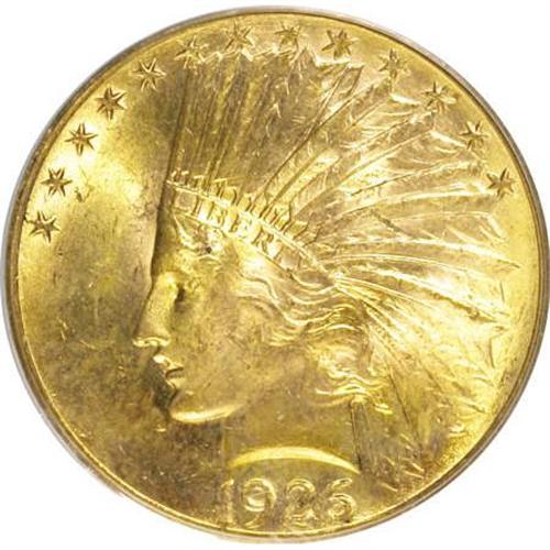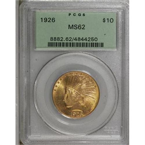 <B>1926 $10 MS62 PCGS.</B></I> PCGS Population (8229/9341). NGC Census: (7721/11210). Mintage: 1,014,000. Numismedia Wsl. Price for NGC/PCGS coin in MS62: $805. (#8882)<BR><BR><B>Coin Engraver:</B> Augustus Saint-Gaudens<BR><BR><b>Shipping:</b> Coins & Currency (<a target="_blank" href="http://www.heritageauctions.com/common/shipping.php">view shipping information</a>)