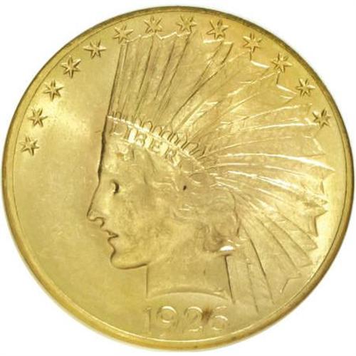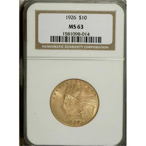<B>1926 $10 MS63 NGC.</B></I> NGC Census: (7237/3595). PCGS Population (6526/2484). Mintage: 1,014,000. Numismedia Wsl. Price for NGC/PCGS coin in MS63: $1,260. (#8882)<BR><BR><B>Coin Engraver:</B> Augustus Saint-Gaudens<BR><BR><b>Shipping:</b> Coins & Currency (<a target="_blank" href="http://www.heritageauctions.com/common/shipping.php">view shipping information</a>)
