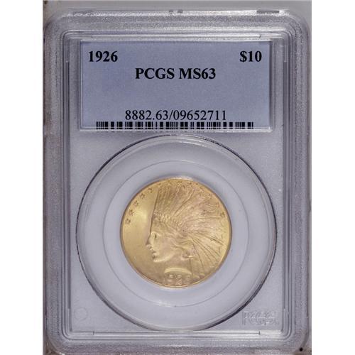 <B>1926<$10> MS63 PCGS.</B></I> The mint frost is interrupted by a few small, but individually insignificant abrasions.