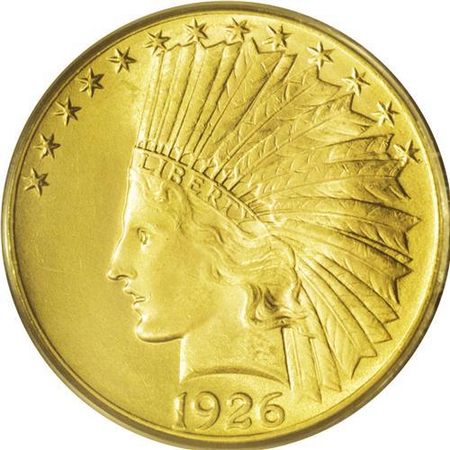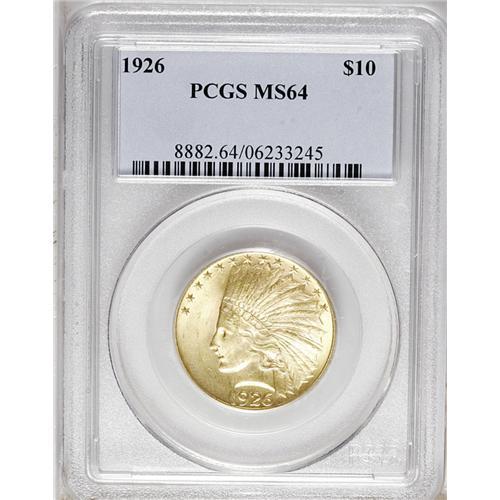<B>1926<$10> MS64 PCGS.</B></I> A highly lustrous example with rich butter-yellow surfaces and orange accents. Boldly impressed with a few luster breaks in the obverse fields.