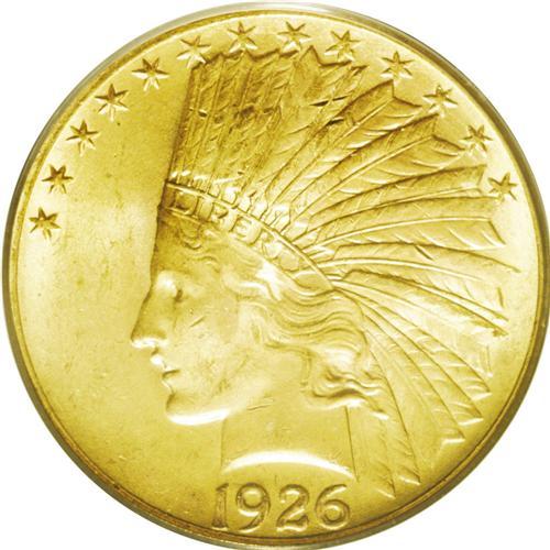 <B>1926<$10> MS64 PCGS.</B></I> Adequately struck, with rich yellow-gold patination. Light marks occur on the Indian's face and neck, and in the reverse field.