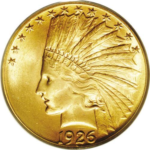 <B>1926<$10> MS64 PCGS.</B></I> Vibrant luster and rich orange-gold toning are seen on both sides. A well struck and flashy near-Gem with nicely preserved surfaces. A few noticeable marks prevent an even finer grade designation.