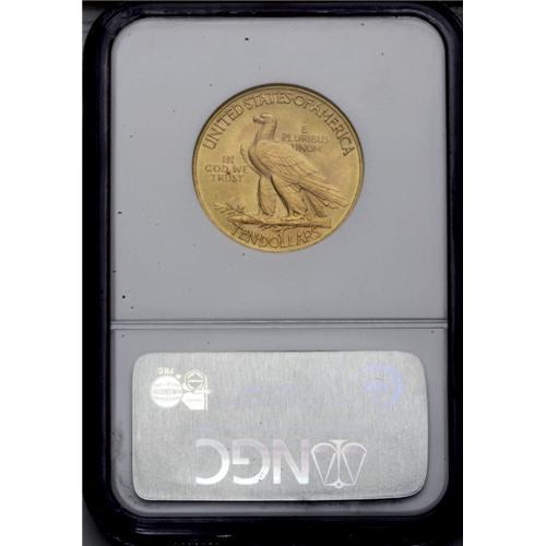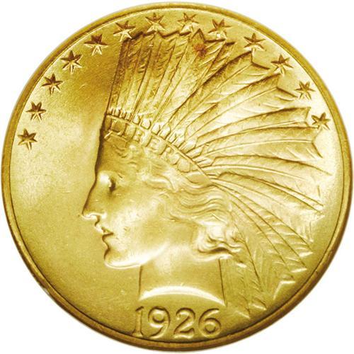 <B>1926<$10> MS65 NGC.</B></I> Both sides exhibit a soft, frosted sheen with just a few inconsequential marks on the design elements. High grade examples of this beautiful gold type coin are enjoying a resurgence in popularity of late and deservedly so since the total number Select and better Indian eagles is really quite limited. <BR><BR><B>Important notice:</B> Heritage usually auctions material at the rate of 200-250 lots per hour. On some occasions eBay Live bid software or the Internet may not be able to keep up with the pace of the auction. We recommend placing a realistic absentee bid now as insurance to avoid disappointment. Occasionally the auctioneer may eliminate or reject an eBay Live bid, and the auctioneer may also reopen a lot after the close of the eBay live bidding (usually because we missed an audience bid), and may reject your bid even if it shows you as the winning bidder. By bidding via eBay Live, you agree that Heritage may award the lot to another bidder at its sole discretion under the circumstances described above or any other reasonable circumstances. Since eBay bids are not shown to us until we open the lot on the floor, we treat those bids just like floor bids. In most cases the floor responds before the eBay bid is presented to us, due to Internet lag time, so for consistency we have made it a policy that floor bids are always considered first over tie eBay live bids. Also please note that all Heritage lots purchased through eBay Live carry a 20% Buyer's Premium. Please make sure you read the Terms and Conditions before you bid. This lot is being auctioned in conjunction with a live floor auction by Heritage Galleries & Auctioneers. All final auction and invoice information will be supplied by Heritage Galleries & Auctioneers, and all other information should be considered preliminary. Lot:4152 <BR><BR><B>Winning Notification and Billing:</B> After the FINAL session in this auction is complete, Heritage will send e-mail and snail mail invoices. This process normally takes several days. All final auction and invoice information will be supplied by Heritage Galleries & Auctioneers, and all other information should be considered preliminary. <BR><BR>This auction will be conducted on a live auction floor and over the Internet through eBay Live. If you choose to place an absentee bid, please take a moment to <font color='#0000ff'><u><a href='http://pages.ebay.com/liveauctions/help/before/laabsentee.html'>learn how eBay Live absentee bidding works</a></u></font><font color='#000000'>