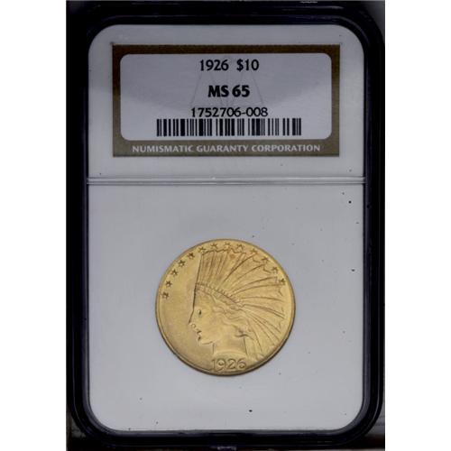 1926 $10 MS65 NGC. Both sides exhibit a soft, frosted
