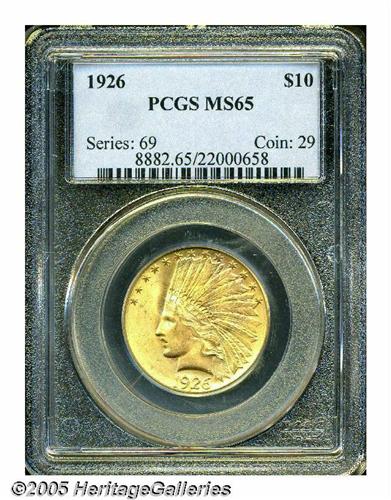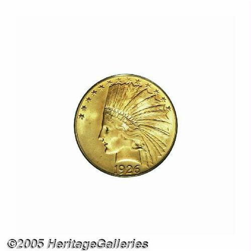 <B>1926<$10> MS65 PCGS.</B></I> Highly lustrous beneath swirling golden-orange patina. The obverse is refreshingly mark-free while a few strategically placed abrasions are of little concern on the right side of the reverse.