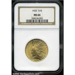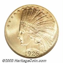 <table><tr><td><TABLE cellSpacing=0 cellPadding=0 width="100%" bgColor=#000000 border=0><TBODY> <TR><TD width="100%"><TABLE cellSpacing=1 cellPadding=3 width="100%" border=0><TBODY><TR><TD width="100%" bgColor=#79735c><FONT face=arial color=#ffffff size=3><B>Description</B> </FONT></TD></TR><TR><TD width="100%" bgColor=#ffffff><FONT face=arial size=2><B>1926 $10 MS66 NGC.</B></I> With smooth, nearly blemish-free features and fulsome mint luster, this coin is earmarked for inclusion in a Gem quality type set. Well struck in virtually all areas, some subtle reddish-golden patina has gathered overall. </FONT></TD></TR></TBODY></TABLE></TD></TR></TBODY></TABLE><BR><A name=PricesRealized></A><TABLE cellSpacing=0 cellPadding=0 width="100%" bgColor=#000000 border=0><TBODY><TR><TD width="100%"><TABLE cellSpacing=1 cellPadding=3 width="100%" border=0><TBODY><TR><TD width="100%" bgColor=#79735c><A name=PR><FONT face=arial color=#ffffff size=3><B>Previous Prices from Heritage Auctions</B> </FONT></A></TD></TR><TR><TD bgColor=#f6f6ed><TABLE cellSpacing=0 cellPadding=0 width="100%" border=1><TBODY><TR><TD align=middle width="33%"><B>Date</B></TD><TD align=middle width="33%"><B>Service</B></TD><TD align=middle width="33%"><B>Price</B></TD></TR><TR bgColor=whitesmoke><TD width="33%"><B>09/16/2003</B></TD><TD width="33%">NGC</TD><TD width="33%">$4,945.00</TD></TR><TR bgColor=whitesmoke><TD width="33%"><B>09/20/2003</B></TD><TD width="33%">PCGS</TD><TD width="33%">$14,950.00</TD></TR></TBODY></TABLE></TD></TR><TR><TD bgColor=#ffffff><FONT face=arial size=1 ?>PLEASE NOTE: All prices realized reflect the final hammer price PLUS the buyer's premium in auctions that charge a buyer's premium. Each item has a notation at the top of the listing indicating whether that lot included a buyer's premium. Example: A item that sells with a final hammer price of $100 and a 20% buyer's premium will display with a price realized of $120. All information listed is intended to be as accurate as possible, but errors are possible. Please use this guide carefully and inform us of any inaccuracies. </FONT></TD></TR></TBODY></TABLE></TD></TR></TBODY></TABLE><BR><TABLE cellSpacing=0 cellPadding=0 width="100%" bgColor=#000000 border=0><TBODY><TR><TD width="100%"><TABLE cellSpacing=1 cellPadding=3 width="100%" border=0><TBODY><TR><TD width="100%" bgColor=#79735c colSpan=6><FONT face=arial color=#ffffff size=3><B>Price Guide*</B> </FONT></TD></TR><TR bgColor=#f6f6ed><TD align=middle><B>Grade</B> </TD><TD align=middle><B>Coin World<BR>(Trends)</B> </TD><TD align=middle><B>Numismedia<BR>Retail</B> </TD><TD align=middle><B>Numismedia<BR>Wholesale</B> </TD><TD align=middle><B>Coin<BR>Universe</B> </TD><TD align=middle><B>Heritage<BR>Value Index</B> </TD></TR><TR bgColor=#ffffff><TD align=middle>65</TD><TD align=right>$3,500.00</TD><TD align=right>---</TD><TD align=right>$2,340.00</TD><TD align=right>$3,300.00</TD><TD align=right>$2,460.75</TD></TR><TR style="FONT-WEIGHT: bold" bgColor=#cccfdd><TD align=middle>66</TD><TD align=right>$12,500.00</TD><TD align=right>---</TD><TD align=right>$5,725.00</TD><TD align=right>$14,900.00</TD><TD align=right>$8,480.00</TD></TR><TR bgColor=#ffffff><TD align=middle>67</TD><TD align=right>---</TD><TD align=right>---</TD><TD align=right>---</TD><TD align=right>---</TD><TD align=right>$18,450.00</TD></TR><TR bgColor=#ffffff><TD colSpan=6><FONT size=1>*All information listed is intended to be as accurate as possible, but errors are possible. No item may be returned or refused based on this information which is provided as a service to our customers. You should contact each pricing source directly to determine the accuracy of this information. </FONT></TD></TR></TBODY></TABLE></TD></TR></TBODY></TABLE><BR><TABLE cellSpacing=0 cellPadding=0 width="100%" bgColor=#000000 border=0><TBODY><TR><TD width="100%"><TABLE cellSpacing=1 cellPadding=3 width="100%" border=0><TBODY><TR><TD width="100%" bgColor=#79735c><FONT face=arial color=#ffffff size=3><B>Population Guide</B> </FONT></TD></TR><TR bgColor=#ffffff><TD align=middle><!-- Begin Output of Population Grid--><TABLE cellSpacing=0 cellPadding=0 width="100%" border=0><TBODY><TR><TD vAlign=center><TABLE cellSpacing=0 width="100%" border=1 cellsadding="3"><TBODY><TR><TD vAlign=center><TABLE cellSpacing=0 cellPadding=3 width="100%" border=1><TBODY><TR><TD vAlign=center align=middle bgColor=#f0f1e8 colSpan=2 <CENTER><FONT face=Arial size=2><B>PCGS Pop </B></FONT><CENTER></CENTER></TD><TD vAlign=center align=middle bgColor=#f0f1e8 colSpan=2><CENTER><FONT face=Arial size=2><B>NGC Pop</B></CENTER></FONT></TD></TR><TR><TD vAlign=center><FONT face=Arial size=2>(66)</FONT> </TD><TD vAlign=center align=right><FONT face=Arial size=2>5</FONT> </TD><TD vAlign=center><FONT face=Arial size=2>(66)</FONT> </TD><TD vAlign=center align=right><FONT face=Arial size=2>18</FONT> </TD></TR><TR><TD vAlign=center><FONT face=Arial size=2>(>66)</FONT> </TD><TD vAlign=center align=right><FONT face=Arial size=2>0</FONT> </TD><TD vAlign=center><FONT face=Arial size=2>(>66)</FONT> </TD><TD vAlign=center align=right><FONT face=Arial size=2>0</FONT> </TD></TR></TBODY></TABLE></TD></TR></TBODY></TABLE></TD></TR></TBODY></TABLE><!-- End Output of Population Grid--></TD></TR></TBODY></TABLE></TD></TR></TBODY></TABLE><BR><TABLE cellSpacing=0 cellPadding=0 width="100%" bgColor=#000000 border=0><TBODY><TR> Important notice: Heritage usually auctions material at the rate of 200-250 lots per hour. On some occasions eBay Live bid software or the Internet may not be able to keep up with the pace of the auction. We recommend placing a realistic absentee bid now as insurance to avoid disappointment. Occasionally the auctioneer may eliminate or reject an eBay Live bid, and the auctioneer may also reopen a lot after the close of the eBay live bidding (usually because we missed an audience bid), and may reject your bid even if it shows you as the winning bidder. By bidding via eBay Live, you agree that Heritag