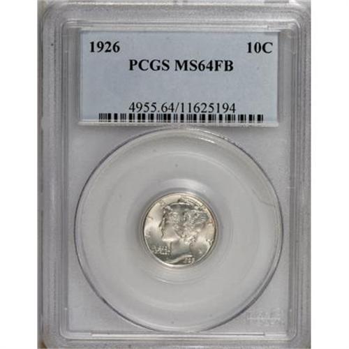 <B>1926 10C MS64 Full Bands PCGS.</B></I> PCGS Population (227/207). NGC Census: (139/113). Mintage: 32,160,000. Numismedia Wsl. Price for NGC/PCGS coin in MS64: $160. (#4955)<BR><BR><B>Coin Engraver:</B> Adolph A. Weinman<BR><BR><b>Shipping:</b> Coins & Currency (<a target="_blank" href="http://www.heritageauctions.com/common/shipping.php">view shipping information</a>)