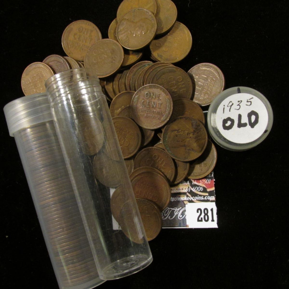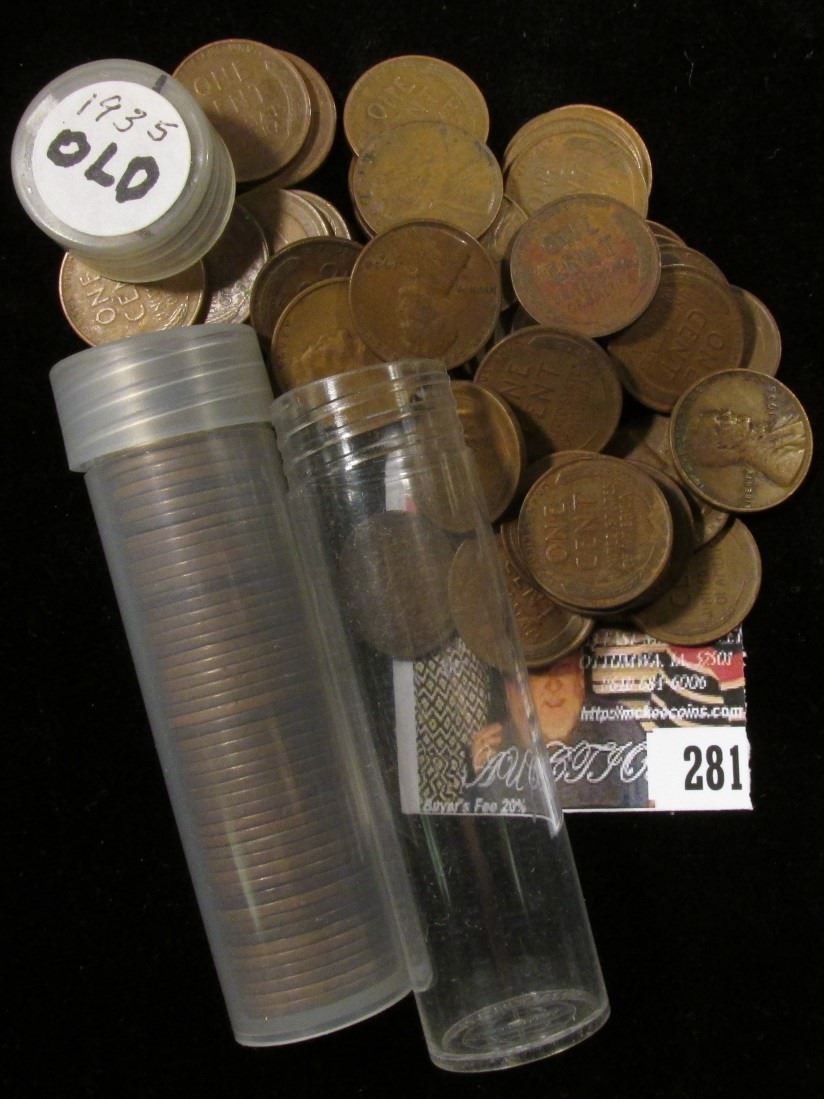 1926 & 1935 Mixed mint mark Solid Date Rolls of U.S. Lincoln Cents in a pair of plastic tubes.