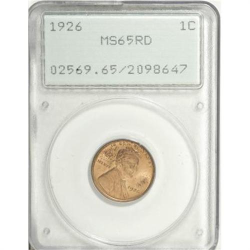 <B>1926 1C MS65 Red PCGS.</B></I> PCGS Population (740/436). NGC Census: (305/208). Mintage: 157,088,000. Numismedia Wsl. Price for NGC/PCGS coin in MS65: $75. (#2569)<BR><BR><B>Coin Engraver:</B> Victor D. Brenner<BR><BR><b>Shipping:</b> Coins & Currency (<a target="_blank" href="http://www.heritageauctions.com/common/shipping.php">view shipping information</a>\)