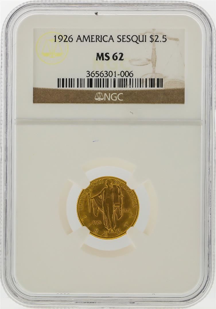 One 1926 $2 1/2 America Sesquicentennial Gold Coin NGC MS62. NGC Certified.