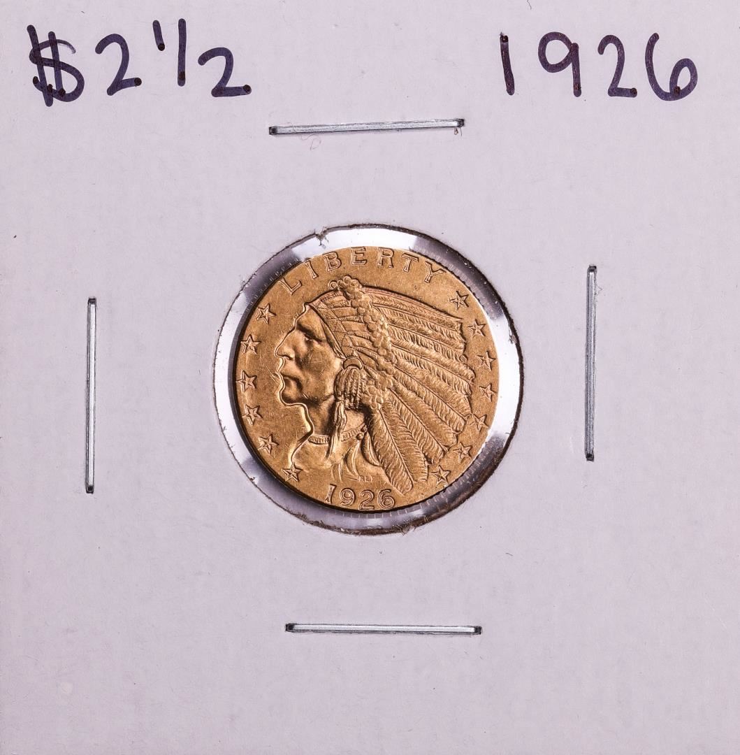 One 1926 $2 1/2 Indian Head Quarter Eagle Coin.