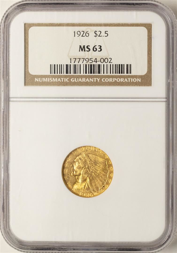 One 1926 $2 1/2 Indian Head Quarter Eagle Gold Coin MS63.