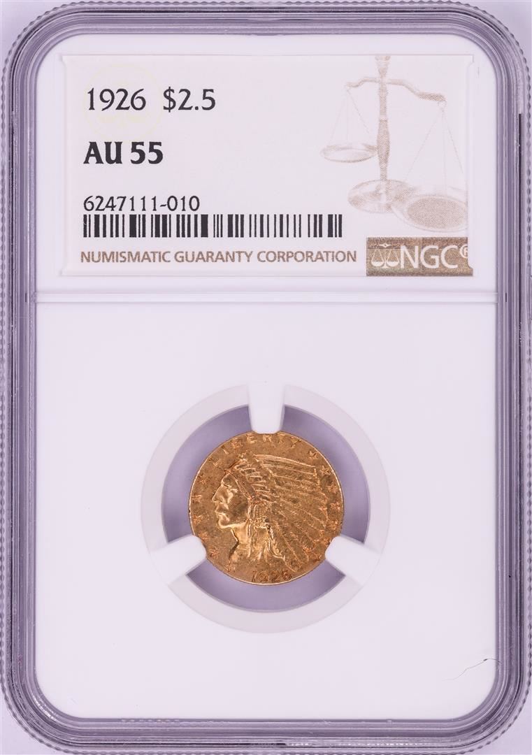 One 1926 $2 1/2 Indian Head Quarter Eagle Gold Coin NGC AU55. NGC Certified.