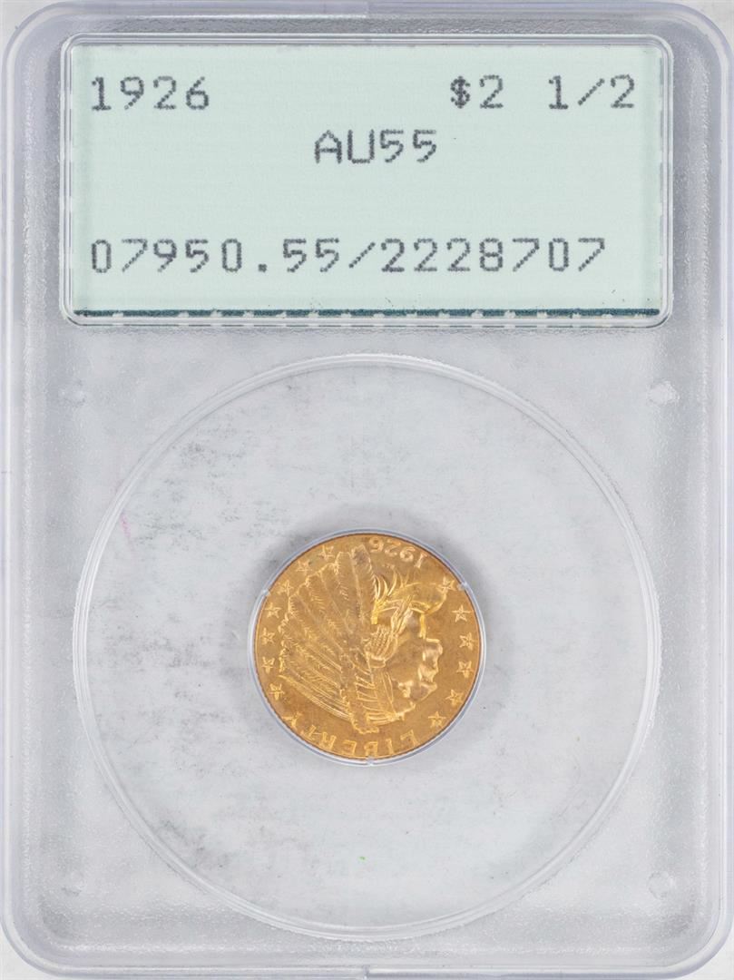 One 1926 $2 1/2 Indian Head Quarter Eagle Gold Coin PCGS AU55 Old Green Rattler. PCGS Graded.