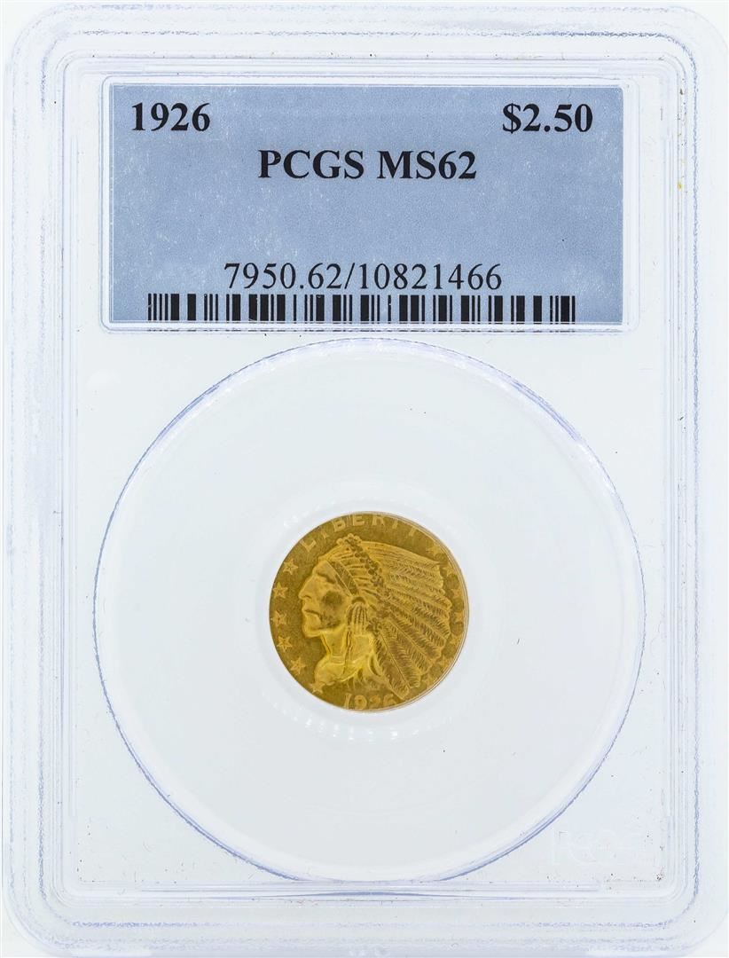 One 1926 $2 1/2 Indian Head Quarter Eagle Gold Coin PCGS MS62. PCGS Graded.