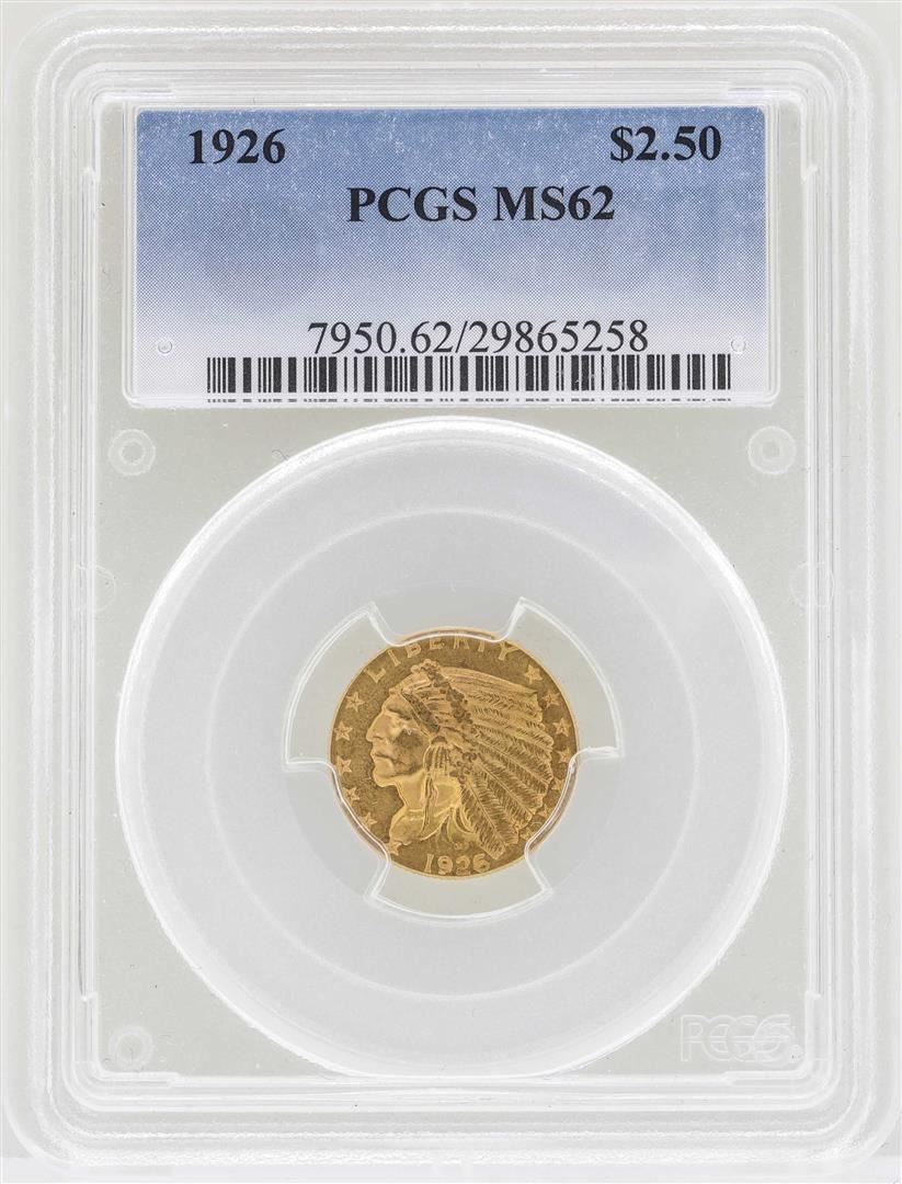 One 1926 $2 1/2 Indian Head Quarter Eagle Gold Coin PCGS MS62. PCGS Graded.