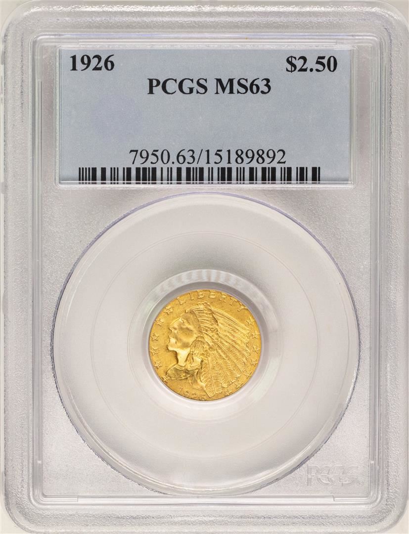 One 1926 $2 1/2 Indian Head Quarter Eagle Gold Coin PCGS MS63. PCGS Graded.