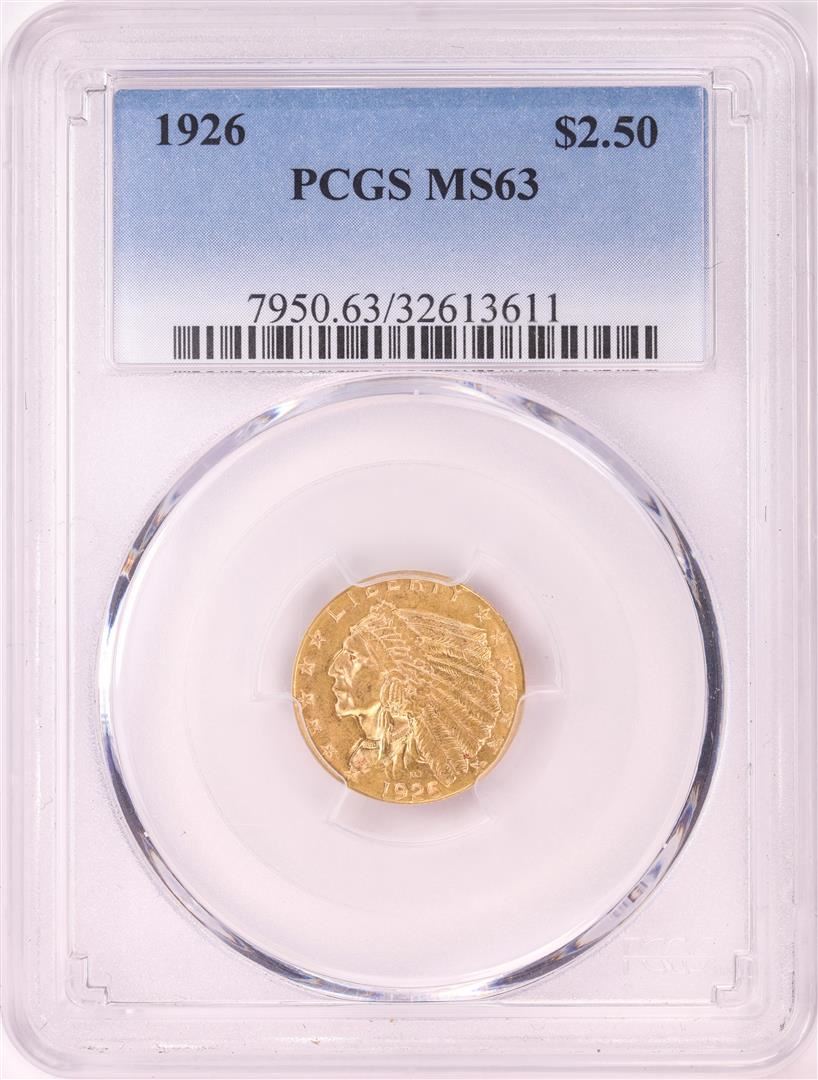 One 1926 $2 1/2 Indian Head Quarter Eagle Gold Coin PCGS MS63.