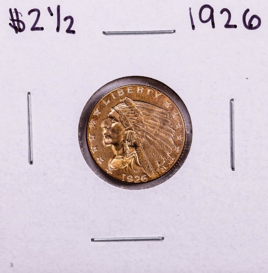 One 1926 $2 1/2 Indian Head Quarter Eagle Gold Coin.