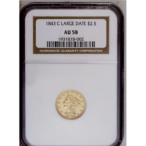 <B>1926<$2 1/2> MS63 NGC.</B></I> This shimmering honey-gold type coin has a pair of hair-thin marks on the left reverse, but no other contact is consequential. Housed in an older generation holder.