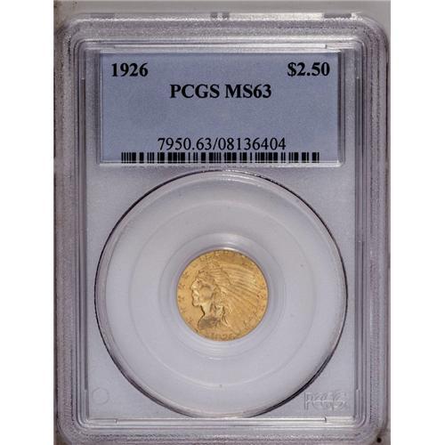 <B>1926<$2 1/2> MS63 PCGS.</B></I> A lustrous coin radiating yellow-gold color. The details are boldly pronounced, with light, grade-limiting marks appearing in the fields.