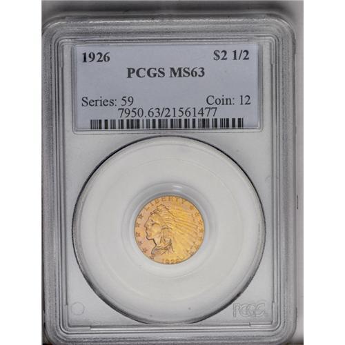 1926 $2 1/2 MS63 PCGS. Sharply struck and fully lustro 1926[$2 1/2] MS63 PCGS.