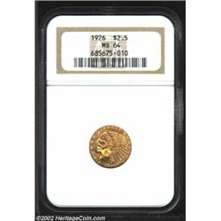 1926 $2 1/2 MS64 NGC. A lustrous and mildly prooflike near-Gem that has a bold strike and impressive