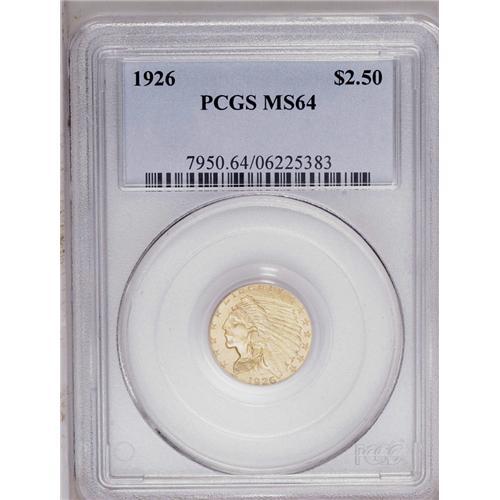 <B>1926<$2 1/2> MS64 PCGS.</B></I> This caramel-colored near-Gem features unbroken mint shimmer, and only a few faint slide marks on the upper reverse define the grade. Crisply struck and attractive.