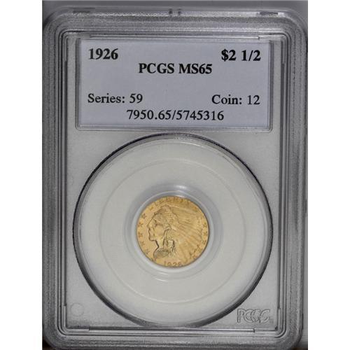 <B>1926<$2 1/2> MS65 PCGS.</B></I> Collectors are fortunate to have an issue such as the 1926 Indian Head quarter eagles, as lovely Gem examples such as the present piece can be acquired with a bit of diligence and patience. Each side of this compelling piece is sunset-orange, with glints of green and hazel on the highpoints. Both sides are remarkably free of impairments. A nice piece, suited for a high grade type or date set.<BR><I>From The Hamburg-Sonoma Collection.</B></I>